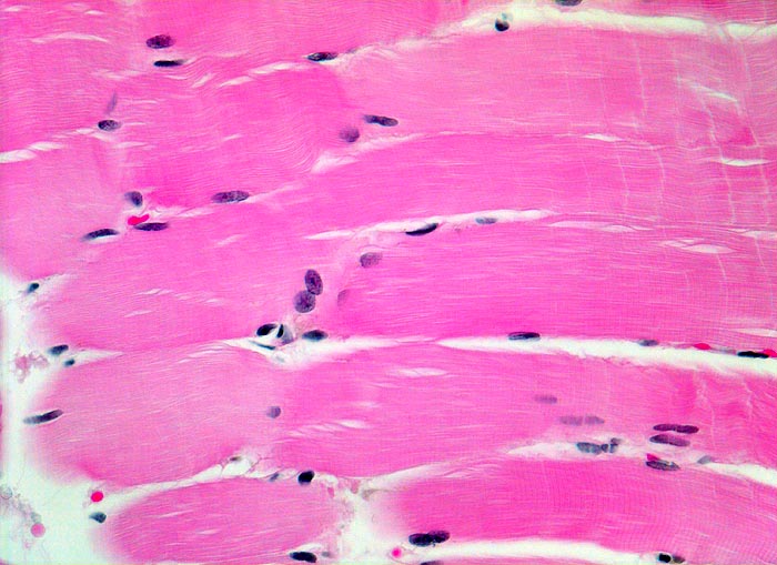 Trotz Skelettmuskeldifferenzierung treten Rhabdomyosarkome auch in Geweben auf, wo normalerweise keine Skelettmuskulatur vorhanden ist (Ductus choledochus, Harnblase). Wahrscheinlich stammen die Tumorzellen von mesenchymalen Vorläuferzellen ab, welche die Fähigkeit zur Ausdifferenzierung in Skelettmuskulatur haben. Immunhistochemisch zeigen die Tumorzellen positive Reaktionen mit Antikörpern gegen Proteine, die für differenzierte Muskelzellen typisch sind. Dazu gehören beispielsweise Desmin, Aktin und Myogenin.