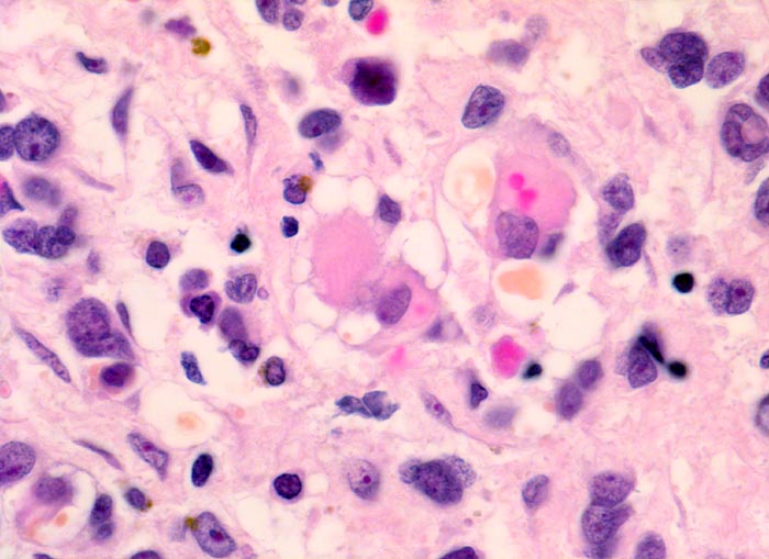 Metastasen finden sich meist in den Lungen, im Knochen, in Lymphknoten, in der Mamma und im Hirn.