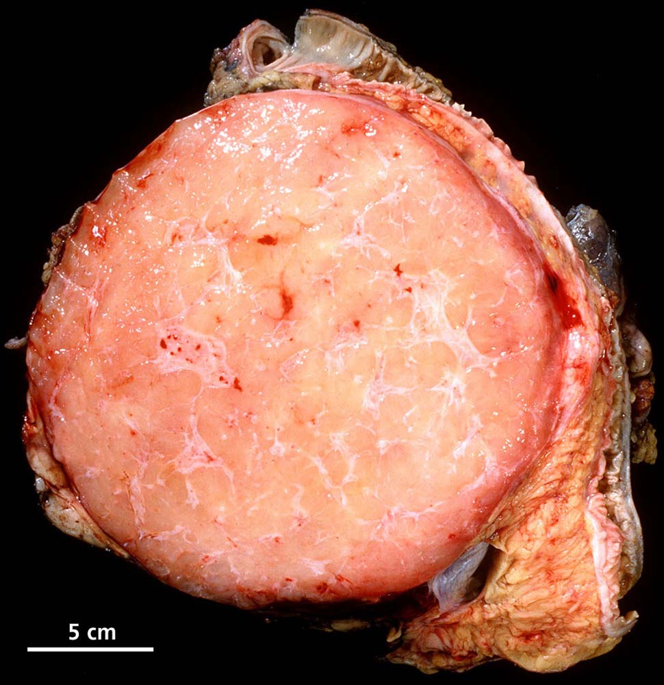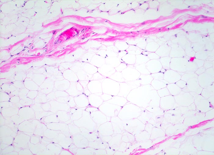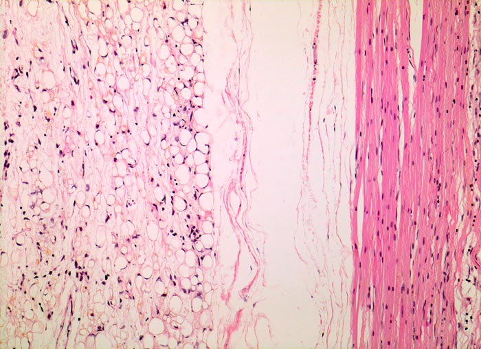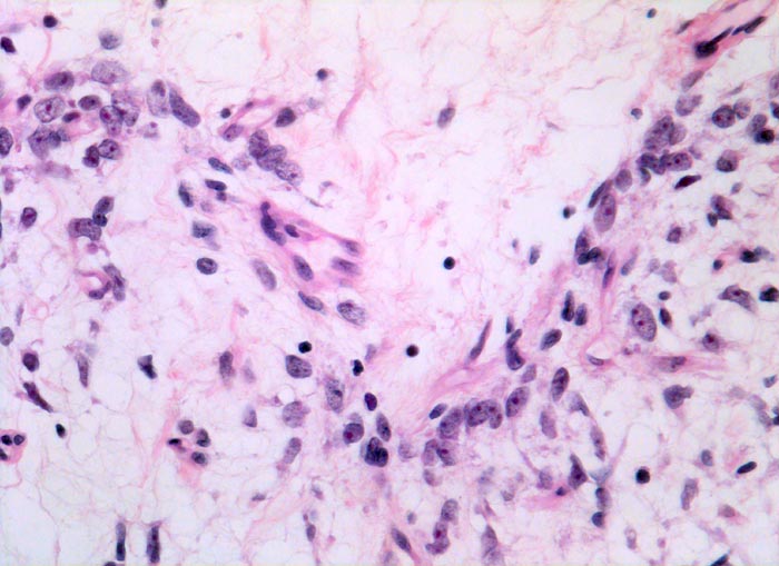Die myxoiden Liposarkome sind histologisch durch Lipoblasten, ein Netzwerk feiner plexiformer Kapillaren (sog. chicken-wire Muster) und eine myxoide Matrix mit reichlich sauren Mucopolysacchariden gekennzeichnet. Die Zellularität spiegelt das biologische Verhalten wieder: hochdifferenzierte Tumoren sind hypozellulär. Am anderen Ende des morphologischen Spektrums steht das zelldichte rundzellige Liposarkom, das Ähnlichkeit mit einem klein-, blau- und rundzelligen Sarkom aufweist, sich aggressiv verhält und metastasieren kann. Für das Metastasierungsrisiko ist der Anteil der rundzelligen Komponente entscheidend (<5% = 23%, 5-10% = 35%, >25% = 58%).