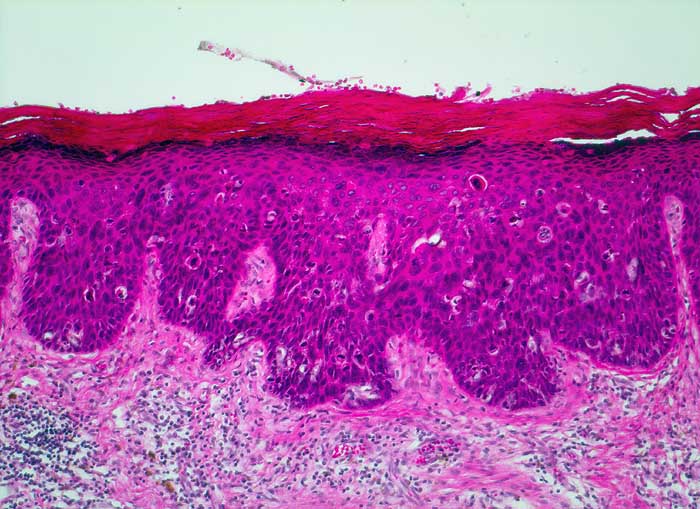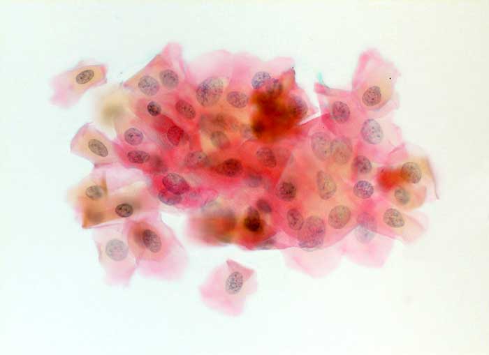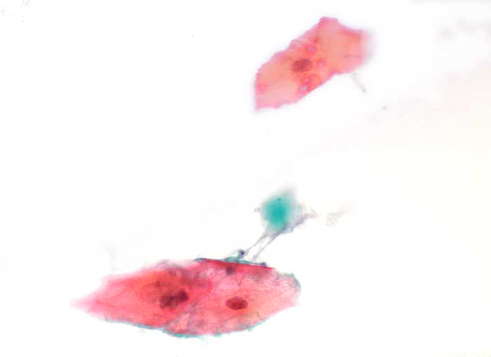 Ein normaler Abstrich von der Vulva enthält keine kernhaltigen Zellen. Für die Diagnose der vulvären intraepidermalen Neoplasie entscheidend ist der Nachweis von atypischen Dyskeratosezellen. Die Dyskeratozyten stammen aus den oberen Schichten der Epidermis. Die Kerne sind geschrumpft und hyperchromatisch. Die Chromatinstruktur ist kaum zu erkennen und für die Diagnose nicht relevant. Kernvergrösserung, Zunahme der Kern-Plasma Relation und Polymorphie der Zellen nehmen parallel zum Schweregrad der Dysplasie zu. Im zytologischen Abstrich erscheint die VIN um einen Grad harmloser als auf dem histologischen Schnitt, da der Abstrich nur die Zellen der obersten Hautschichten enthält.