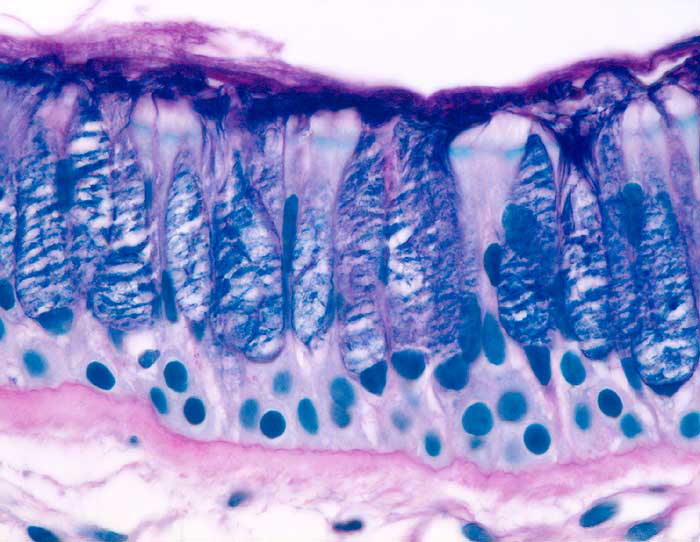 Becherzellen lassen sich vor allem in Bronchialsekret oder Bronchialbürsten identifizieren. Sie treten oft in Gruppen zusammen mit Flimmerepithelzellen auf, wobei das normale Verhältnis von Becherzellen zu Flimmerzellen etwa 1:5 bis 1:10 beträgt. Da Becherzellen rasch degenerieren sind Nacktkerne häufig. Becherzellen sind vermehrt bei Asthma, chronischer Bronchitis und Bronchiektasen. Bei sehr zahlreichem Auftreten muss differentialdiagnostisch an das Vorliegen eines muzinösen bronchioloalveolären Karzinoms gedacht werden.