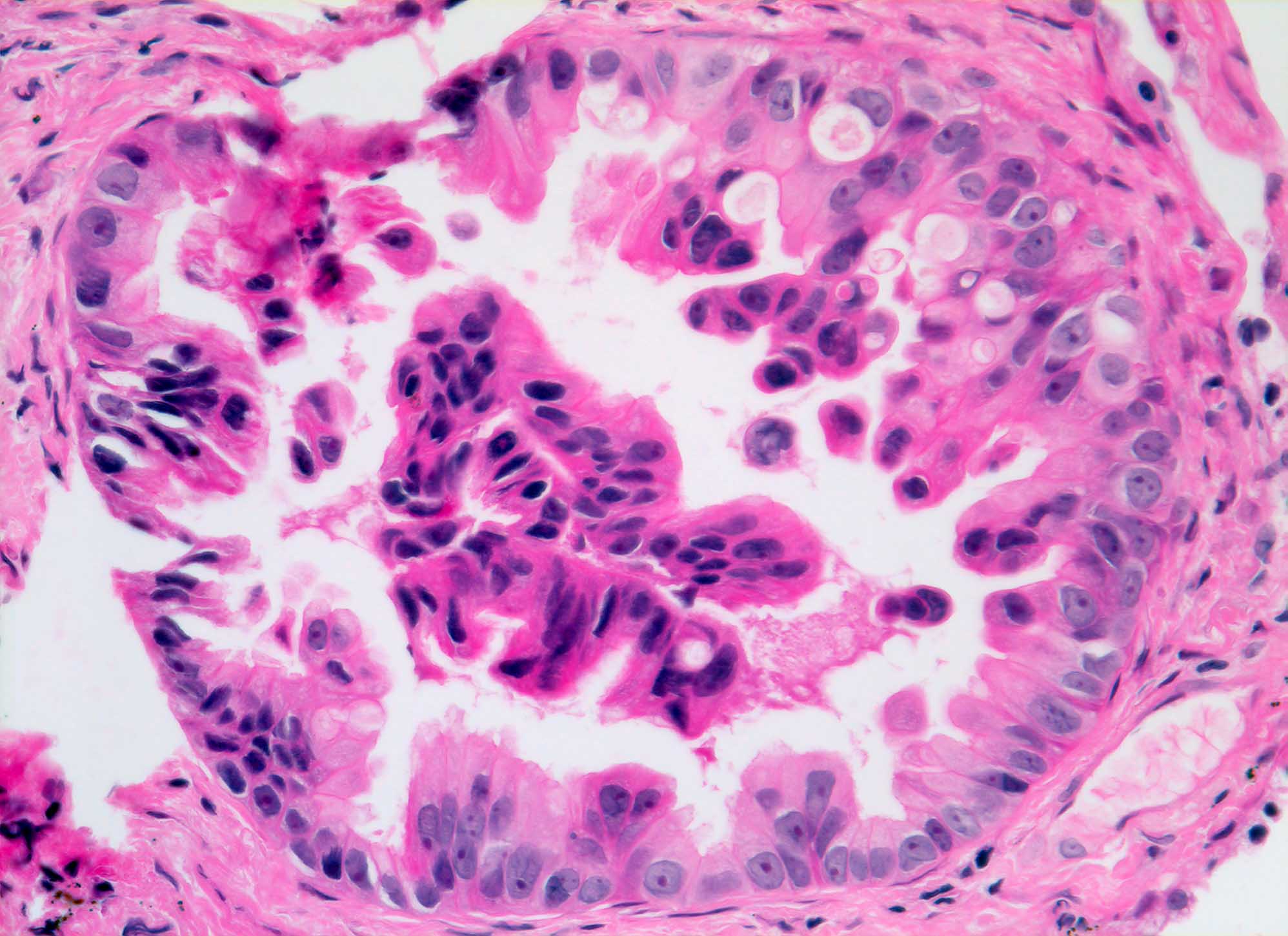 Unten werden drei verschiedene Beispiele eines Adenokarzinoms gezeigt.