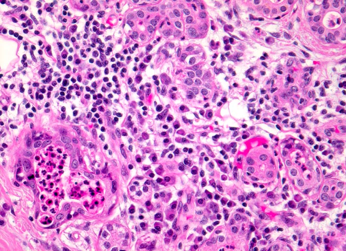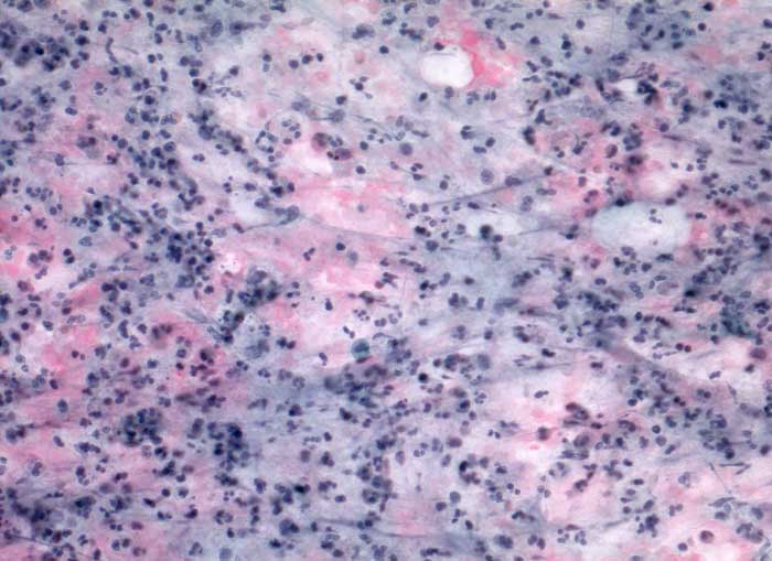 Akute bakterielle Sialadenitiden werden oft verursacht durch eine Gangobstruktion (z.B. Steine), können aber auch bei schlechter Mundhygiene oder bei Immunsupression vorkommen. Die Feinnadelpunktion kann durch eine Druckverminderung zu einer Schmerzreduktion führen. Das Punktat gleicht einem Abszess mit neutrophilen Granulozyten, Fibrin und Nekrosen. Gelegentlich sind Erreger nachweisbar. Zu einem späteren Zeitpunkt kommen Lymphozyten, Plasmazellen, Makrophagen, Granulationsgewebe und Epithelien mit regenerativen Veränderung/Atypien zur Darstellung.
