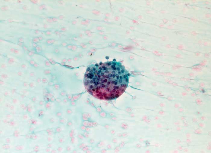 Bei follikulären Läsionen gelten folgende grobe Regeln: Viel Kolloid, wenig Zellen und Makrofollikel sprechen für eine nicht neoplastische Struma. Wenig Kolloid, zellreicher Ausstrich und Mikrofollikel sprechen für eine neoplastische Läsion. Da die Zellularität stark von der Punktionstechnik abhängt, können aufgrund der oben formulierten Regeln keine exakten Diagnosen, sondern lediglich Aussagen zur Wahrscheinlichkeit des Vorliegens einer bestimmten Läsion abgegeben werden.