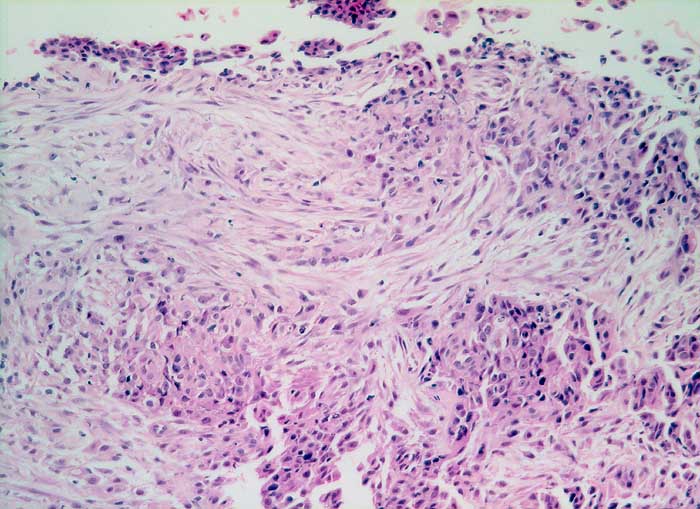 Entscheidend für die Diagnose eines malignen Mesothelioms sind maligne Zellen, die aussehen wie Mesothelzellen. Typisch ist ein Kontinuum von gutartigen, abnormen und malignen mesothelialen Zellen. Die Tumorzellen bilden polyzyklisch begrenzte papilliforme Verbände oder sitzen einem homogenen Matrixkern auf. Zellkannibalismus und lange Zellketten (Indian Files) sind häufig bei Mesotheliomen und selten in gutartigen Ergüssen. Die einzelnen malignen Zellen sind grösser und variabler als gutartige Mesothelien. Oft trifft man auf grosse und mehrkernige Tumorzellen. Das Zytoplasma von Mesotheliomen ist auffallend dicht ,anders als das eher helle Zytoplasma von Adenokarzinomen.