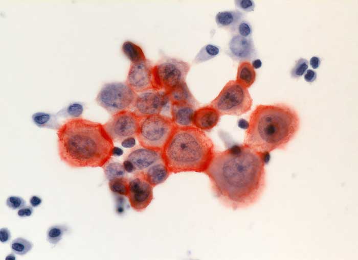 - Dieses Zelloberflächen Glykoprotein wird in einem hohen Prozentsatz exprimiert von serösen, endometrioiden und klarzelligen Tumoren des Ovars, der Zervix, und des Endometriums, klarzelligen Tumoren der Harnblase, pankreatobiliären Tumoren und epitheloidzelligen Mesotheliomen.
