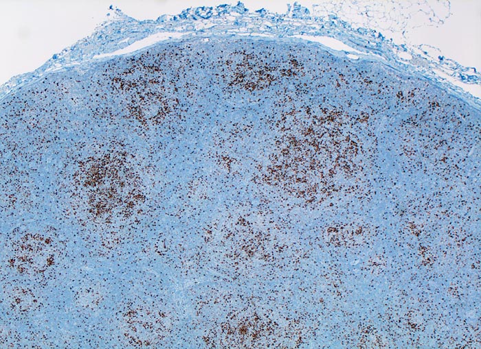 - 100% der Zellkerne in Burkitt Lymphomen sind positiv.