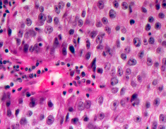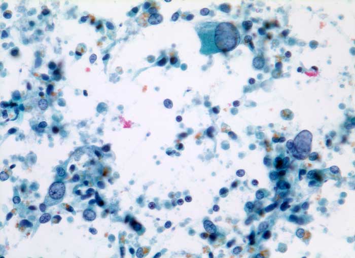 Die zytologische Diagnose des Prostatakarzinoms bereitet in der Regel keine grossen Schwierigkeiten. Die Karzinomzellen sind etwas grösser als normale Prostataepithelien. Die Kerne sind wenig grob strukturiert und ziemlich monomorph. Die Kern-Zytoplasma Relation ist erhöht. Nukleolen, die bereits bei 100 facher Vergrösserung gut sichtbar sind, stellen ein wichtiges Malignitätskriterium dar. Im Übrigen hängt das zytologische Bild von der Differenzierung des untersuchten Tumors ab.