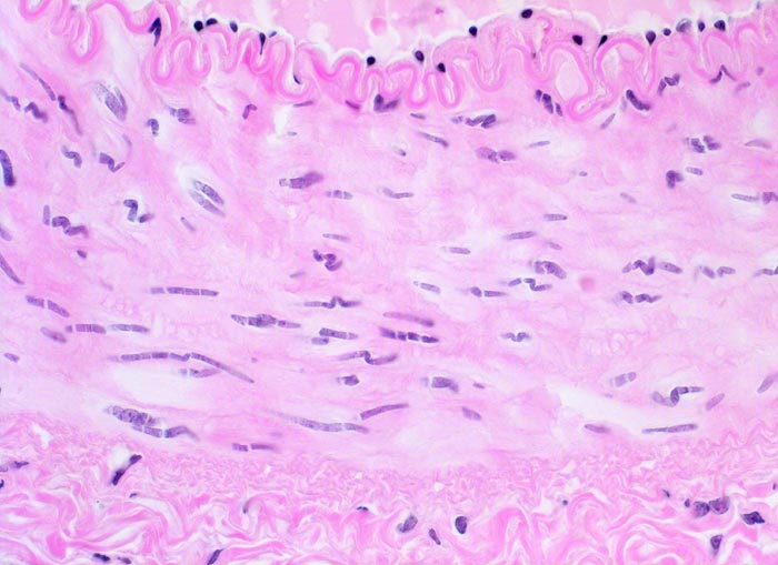 Morphologie: Die Atherosklerose befällt Arterien vom elastischen Typ und die grossen und mittelgrossen Arterien vom muskulären Typ.