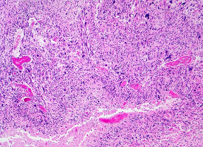 Das Glioblastoma multiforme (WHO Grad IV) ist der bösartigste und mit 50-60% auch der häufigste astrozytäre Tumor.