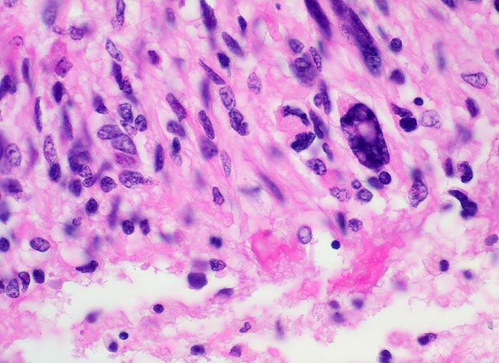 - Ausgeprägte Zellpolymorphie und Atypie.