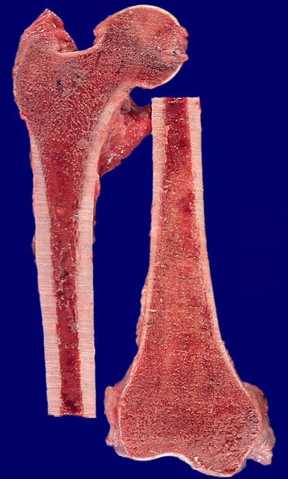 Die meisten Patienten zeigen Zeichen einer Knochenmarkinsuffizienz: Thrombozytopenie und/oder Anämie und/oder Neutropenie. Selten sind eine Lymphadenopathie, Hepatomegalie und Splenomegalie nachweisbar. Die massive Knochenmarkinfiltration äussert sich oft in Form von Knochenschmerzen.