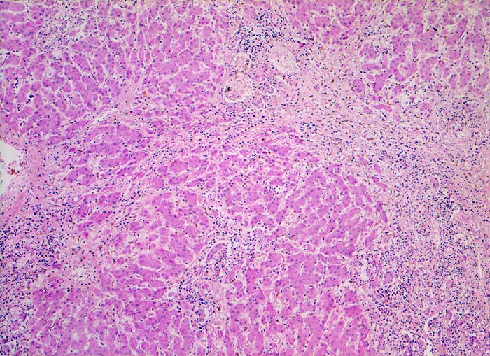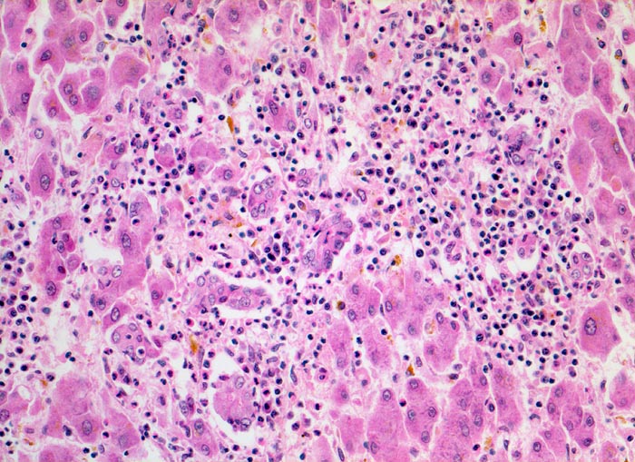 Eine akute virale Hepatitis wird nur sehr selten biopsiert, da bei gesicherter akuter Infektion keine Indikation zur Biopsie gegeben ist und viele Fälle klinisch inapparent verlaufen.
