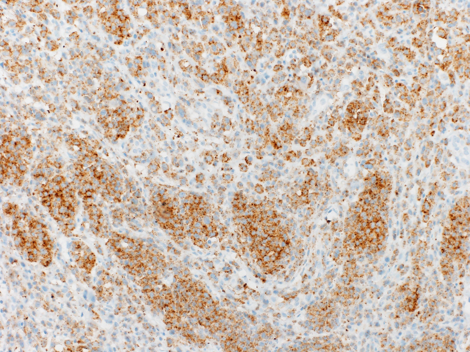 In Wiesner's nevu, classic features of Spitz nevus, such as Kamino bodies, spindle-shaped melanocytes, epidermal hyperplasia and clefting around junctional melanocytic nests, are absent. These tumors may be sporadic or appear multiple in patients with an autosomal dominant syndrome caused by germline mutations in BAP1. Both sporadic and Wiesner nevi in the familial syndrome show BRAF V600E mutation and loss of nuclear staining for BAP1. If a BAP1 mutation is confirmed in a tumour, the patient's treating physician should be informed of the possibility of a BAP1 germline mutation, so they can consider whether genetic counselling and further testing of the patient and investigation of their family is appropriate. Wiesner's nevi may present as a pure large epithelioid cell proliferation or as in this case as a combined lesion in association with a conventional nevus. Pathology. 2013 Feb;45(2):116-26. Tumours associated with BAP1 mutations. Murali et al. Am J Surg Pathol. 2013 Feb;37(2):193-9. Combined BRAF(V600E)-positive melanocytic lesions with large epithelioid cells lacking BAP1 expression and conventional nevomelanocytes. Busam et al.