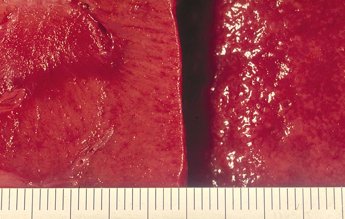 Die diabetische Niere ist im allgemeinen vergrössert, die Oberfläche granuliert und die Konsistenz derb. Bei schwerer Atherosklerose und fortgeschrittener Niereninsuffizienz kann die Niere auch normal gross oder verkleinert sein.