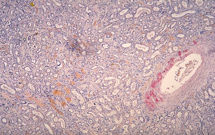 Glomeruli und Interstitium negativ. AL-Amyloid.