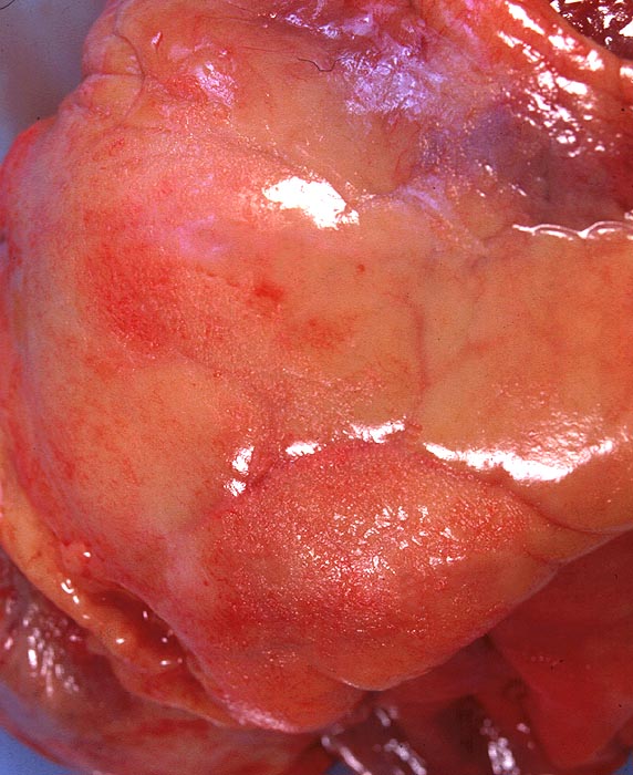 Fein granulärer ► Fibrinbelag auf dem Perikard.