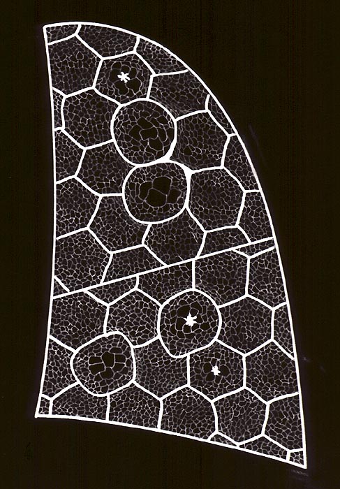 Beim zentrolobulären Emphysem beginnt der Prozeß zentral im Bereich der terminalen Bronchiolen bei zunächst noch erhaltener Peripherie: Es kommt zur Wanddestruktion und zu einer Ektasie, ausgehend vom Lobuluszentrum, während die Alveolen zunächst intakt bleiben. Später kann die Destruktion auf den gesamten Lobulus übergreifen (Endstadium des leeren Lobulus). Die Lunge weist verschieden grosse Löcher auf, die den zentralen Lobulusabschnitten entsprechen. Diese Form ist häufiger mit einer Bronchitis verbunden.