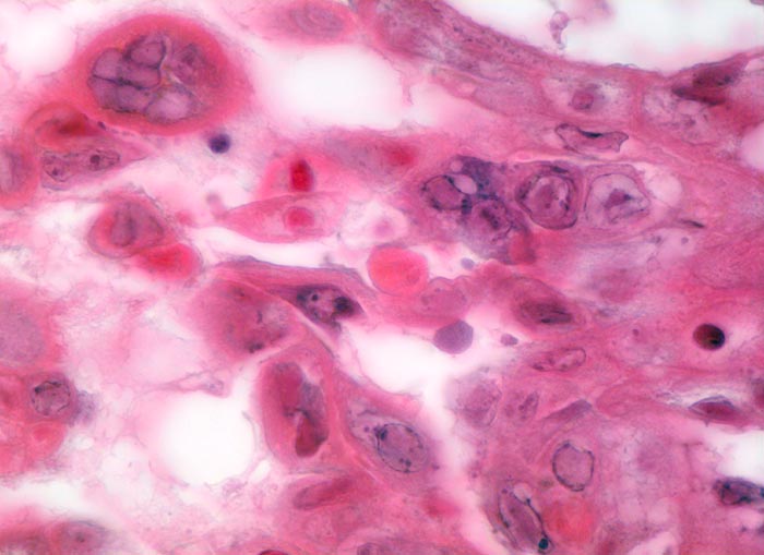 Herpes Infektion der Haut: mehrkernige Riesenzellen