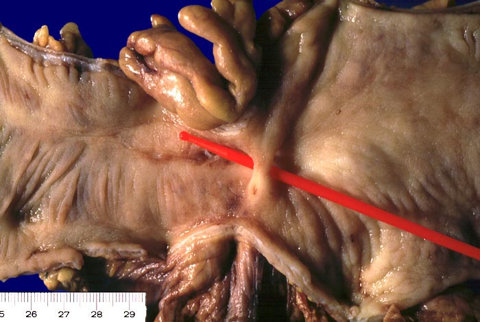Stark abgeflachtes bis aufgehobenes Schleimhautrelief.