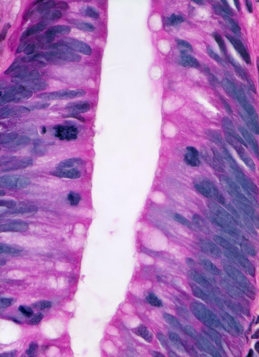 Der Schweregrad der Dysplasie wird meist in zwei therapierelevanten Stufen angegeben (low grade und high grade). Früher wurde ein dreistufiges System verwendet (leichte, mittelschwere und schwere Dysplasie). Leichte und mittelschwere Dysplasie entsprechen der low grade Dysplasie, die schwere Dysplasie entspricht der high grade Dysplasie. Bei der low grade Dysplasie sind die Kerne stiftförmig und wandern nur selten bis zum Drüsenlumen hoch. Die Drüsen sind regelmässig angeordnet. Bei der high grade Dysplasie sind die Kerne deutlich abgerundet, gross und polymorph. Die Drüsen zeigen oft komplexe kribriforme Strukturen. Die Epithelzellen wandern bis zum Drüsenlumen hoch.