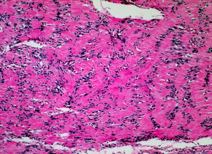 Die parallele Anordnung von Zellkernen und Zytoplasmafortsätzen nennt man Verocay body. Diese sind typisch für Schwannome können aber auch von anderen Tumoren imitiert werden (z.B. Meningeom).