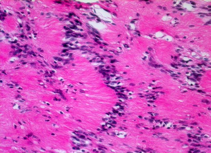 Die parallele Anordnung von Zellkernen und Zytoplasmafortsätzen nennt man Verocay body. Diese sind typisch für Schwannome können aber auch von anderen Tumoren imitiert werden (z.B. Meningeom).