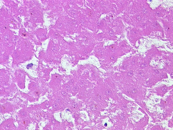 Schattenhaft erkennbare nekrotische Tumorzellen.
