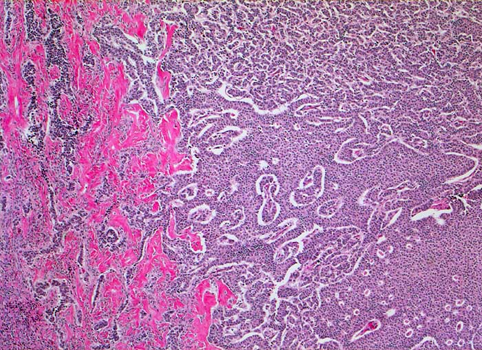 Teils trabekuläres, teils solides Wachstum mit zahlreichen