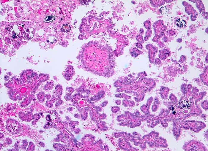 Papillär gebauter Tumor mit zahlreichen Psammomkörperchen.