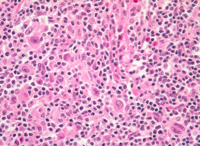 Sternberg/Reed Zellen mit prominenten Nukleolen.