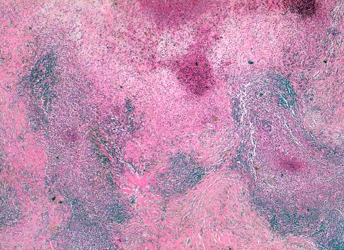 Von breiten Bindegewebszügen durchsetzter Lymphknoten
