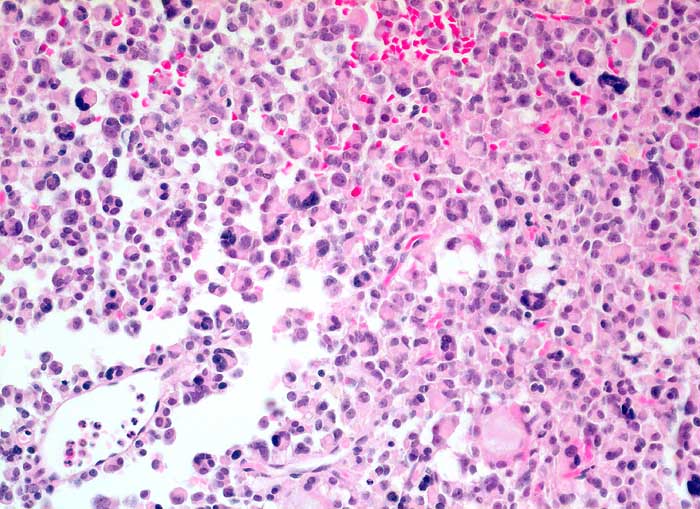 Diffus wachsendes Hypophysenadenom mit zahlreichen mehrkernigen Zellen