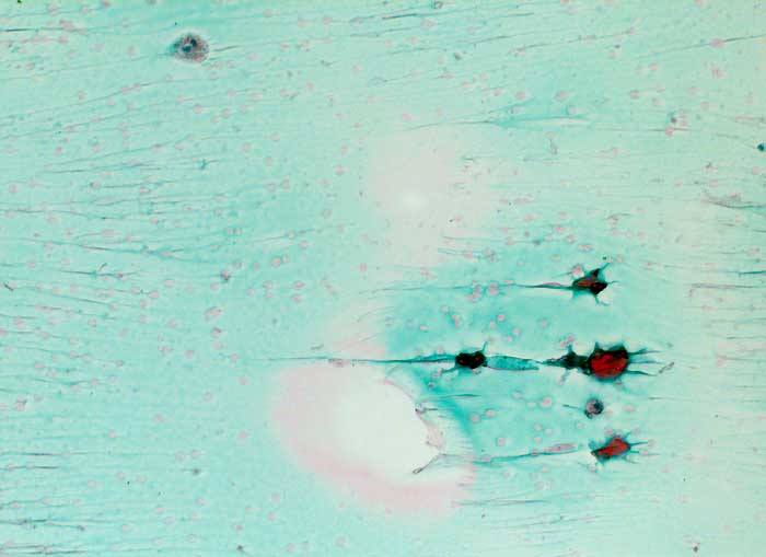 Feinnadelpunktion Schilddrüse: im Hintergrund wässriges Kolloid und vereinzelt