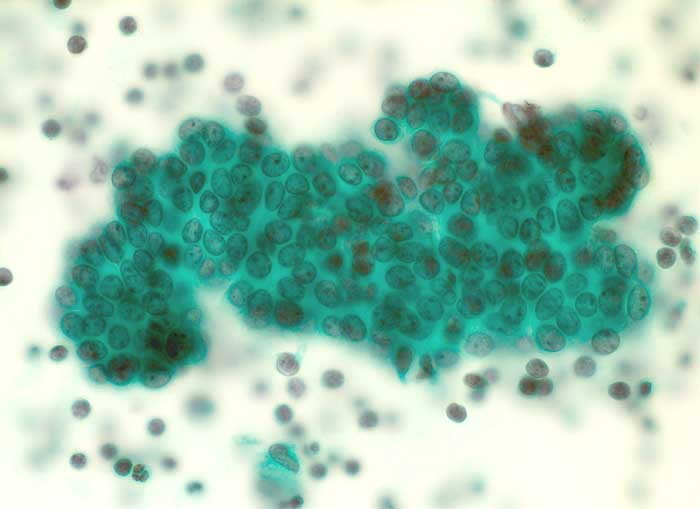 Pleuraerguss: papilliformer monomorpher Zellverband mit nur geringen Atypien.