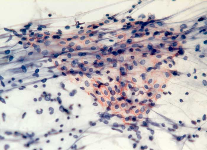 Normalerweise reagieren Mesothelzellen negativ mit BerEP4. Da in diesem Fall normale Mesothelzellen positiv sind für BerEP4, kann die Herkunft der atypischen ebenfalls BerEP4 positiven Zellen nicht abgeleitet werden.