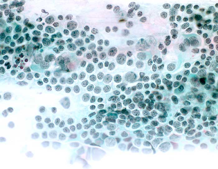 Portio/Zervixabstrich: dicht gelagerte Keimzentrumszellen mit