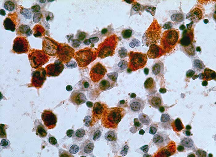 Pleuraergusszytologie: die atypischen Zellen sind positiv für den melanozytären Marker Melan A
