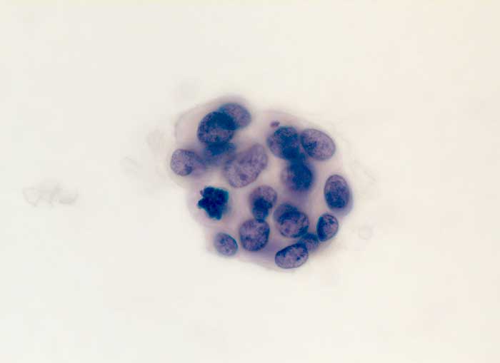 Zytologische Diagnose: Massenhaft Zellen eines malignen Tumors. Der Befund könnte unter anderem zu einem Mesotheliom passen.