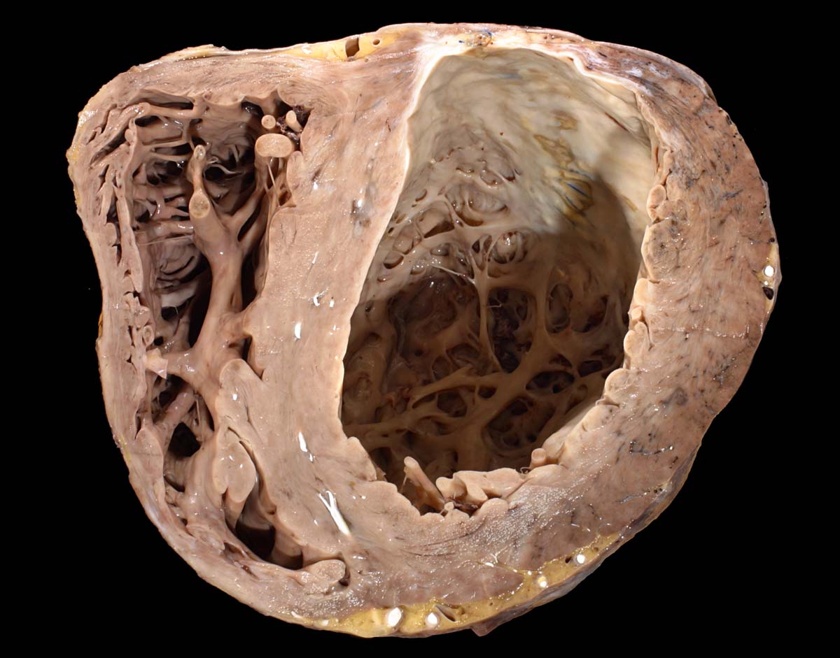 Alter Hinterwandinfarkt mit aneurysmatischer Ausbuchtung der Hinterwand.