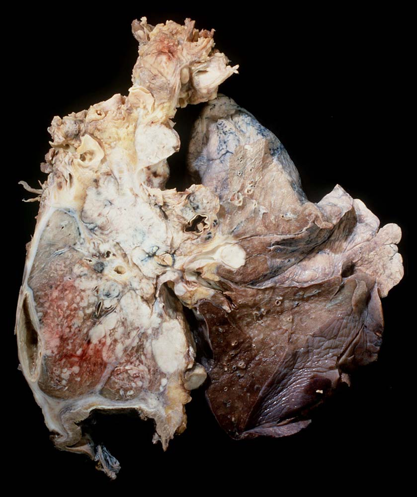 Atelektase und teilweise xanthomatöse Pneumonie.